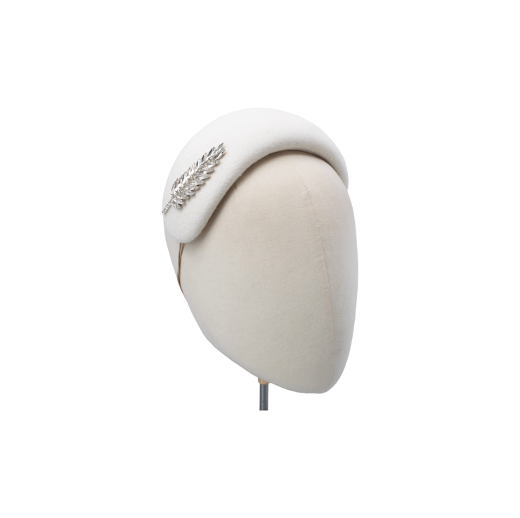 Handcrafted in pure wool felt, the base is shaped on a traditional millinery block. Once dry, wire is hand sewn around the inside edge to ensure long-lasting wear. Once trimmed, it is fully lined in a luxurious silk dupion fabric for a couture finish.