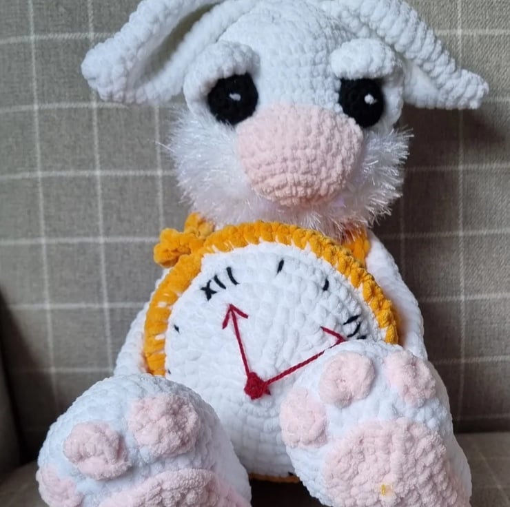 well i mean who couldnt resist making a squishy huggy white rabbit that can tell the time.