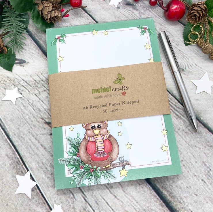Each notepad has a recycled paper wrap around band. Your notepad will be wrapped in tissue paper and carefully packaged.