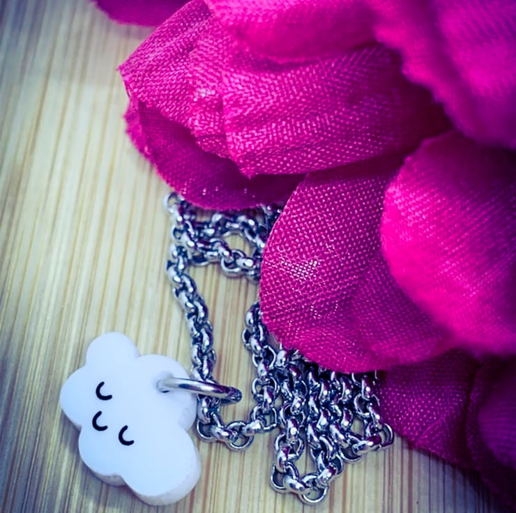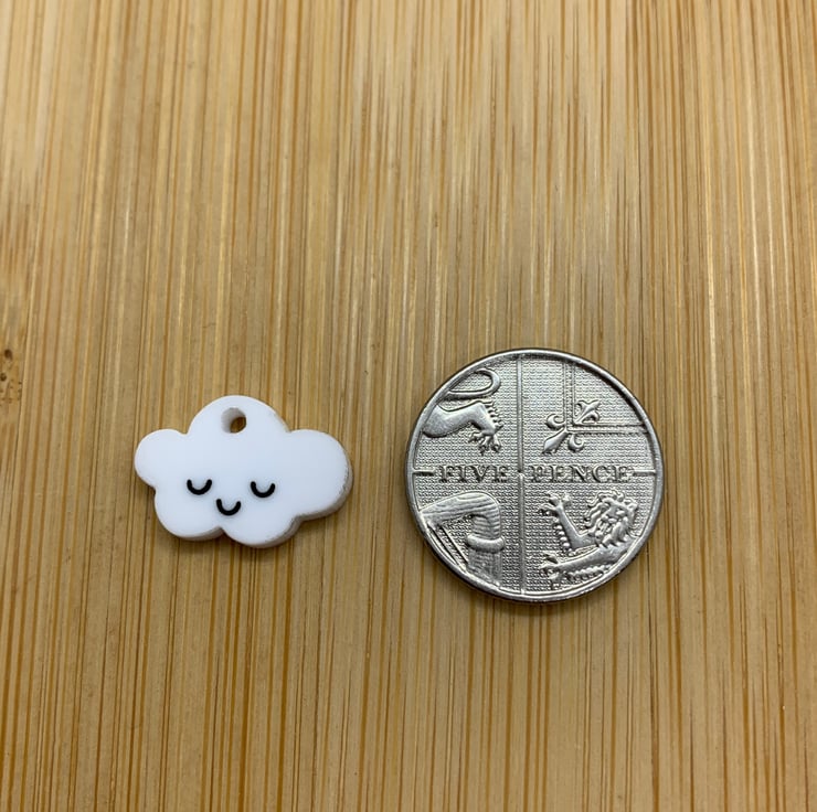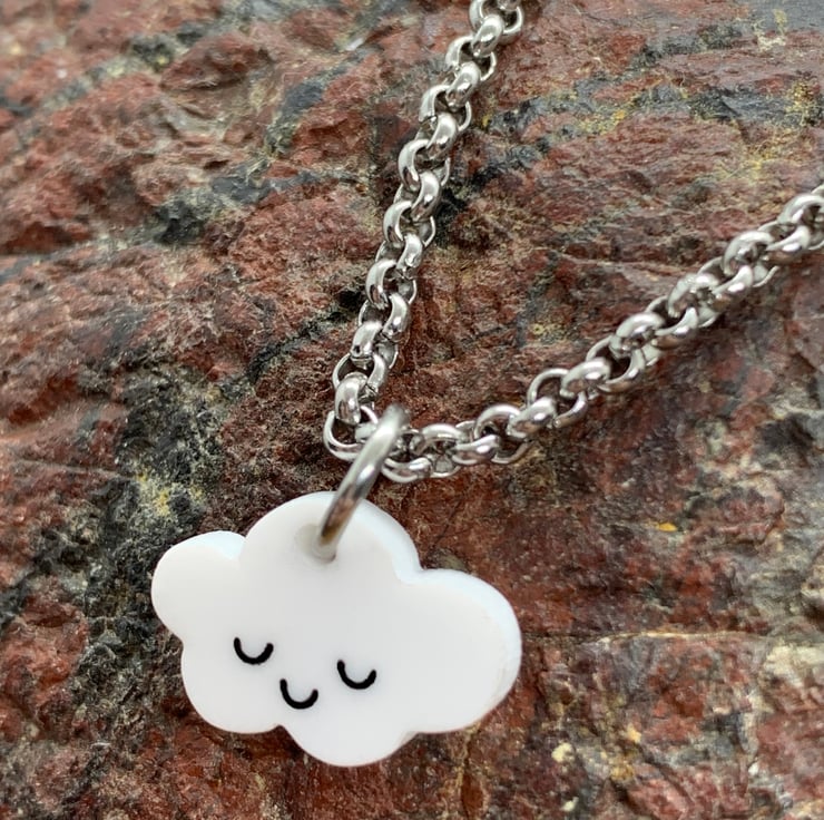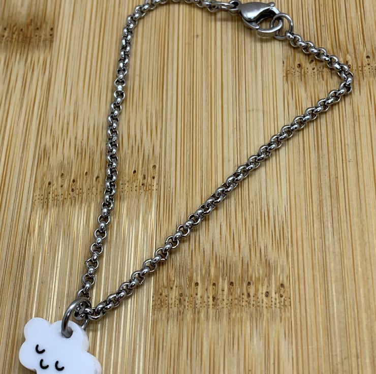 Each Bracelet is made from a White colour 1.5cmx1.2cm, 3mm thick laser cut Acrylic Kawaii Cloud charm with black detailing. It is finished with a Stainless Steel jump ring and 2.5x1mm Stainless Steel Rolo Chain with lobster claw clasp. These Bracelets come as standard as 7inches in length which should fit most wrist sizes. I can make these Bracelets Longer or Shorter than this, please send me a message and I will be happy to discuss.