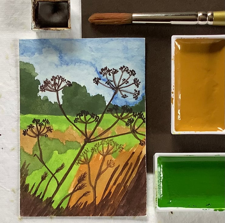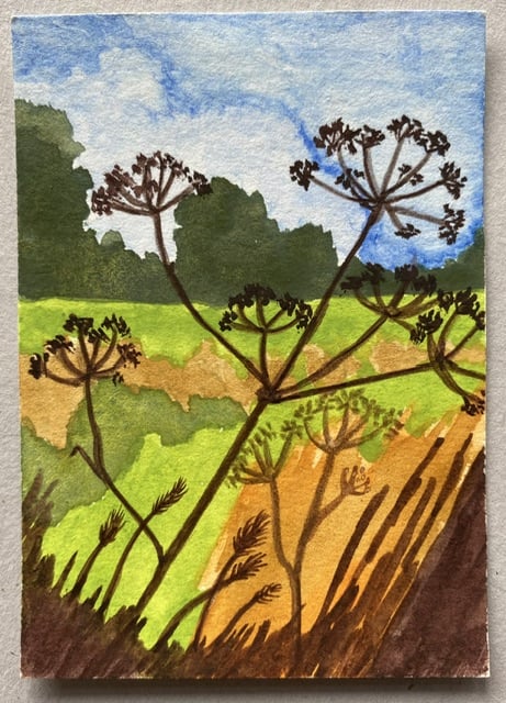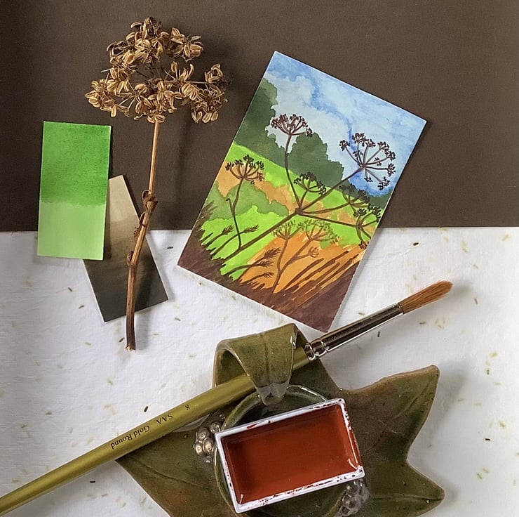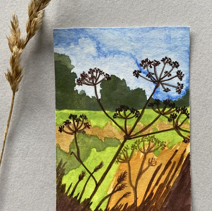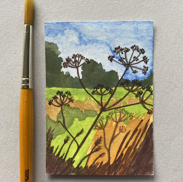 This is an art trading card (aceo - art cards editions original) hand painted in watercolour on medium weight watercolour paper and measures 3.5” x 2.5”, standard aceo size.