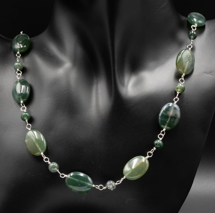 Each stone is hand linked onto sterling silver wire to form a continuous necklace chain. There is no fiddly clasp with this piece, at 25 inches long it just pops over the head.