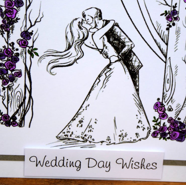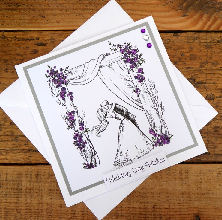Wedding card made from 300gsm white card. Stamped out image and coloured in the flowers. Added some gems and a sentiment to complete. Makes a lovely card to send to the happy couple.