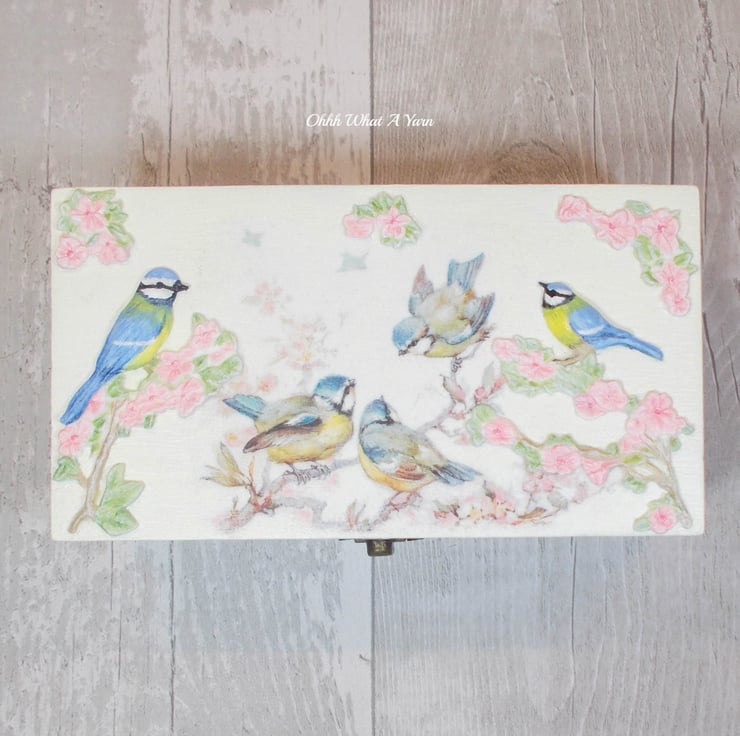 I have recently started diversifying and adding more crafts to my repertoire and I am thoroughly enjoying using mixed media to create lots of new pieces including this pretty blue tits box.