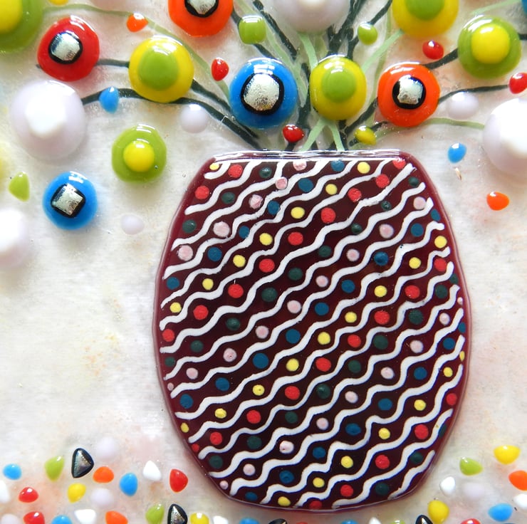 Handmade Fused Glass 'Vase of Flowers' Picture.