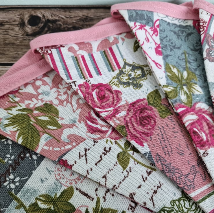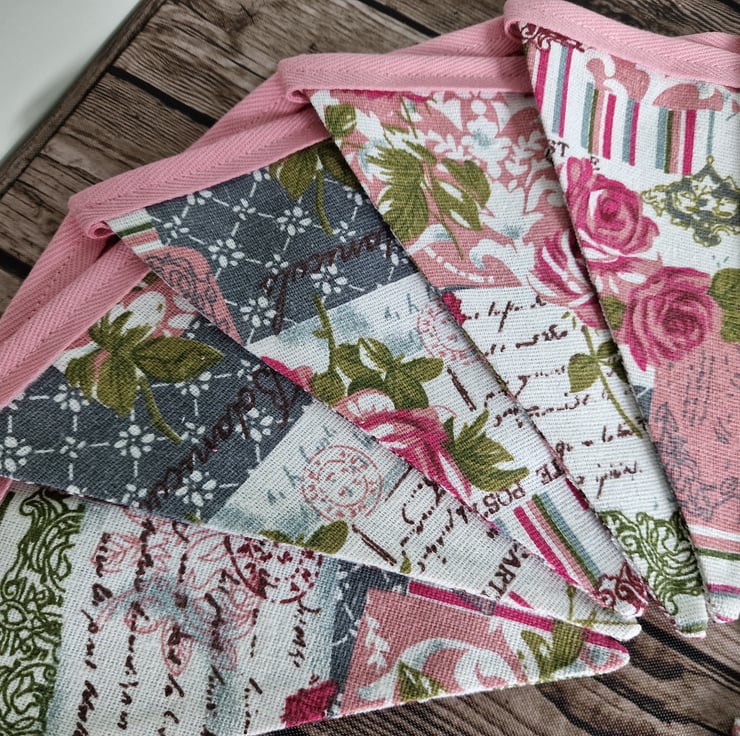 It comes in a standard length of 2.4 metres, and incorporates 10 double sided flags. Each flag is 16cm long and 14cm wide. The flags are double sided, with the same fabric used on both sides.