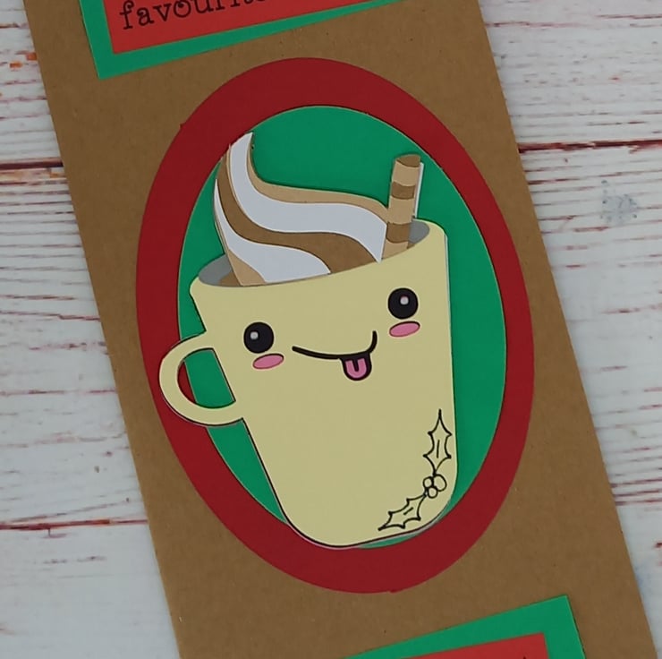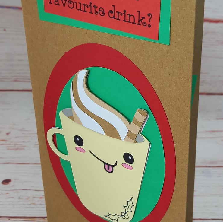 Featuring a smiling mug of Cocoa cut from quality card stock and the joke 'What's Santa's favourite drink? Co - Co - Coa' this seasonal card is certain to raise a smile & put everyone in the Christmas spirit...