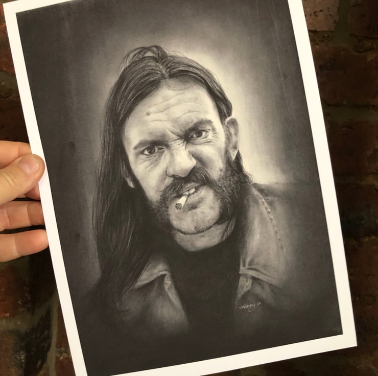 A4 print of my drawing of the legend that is Lemmy from Motörhead. Printed on quality 230gm matt A4 paper. This will be posted in a flat card envelope or larger A3 size in recycled cardboard tube.