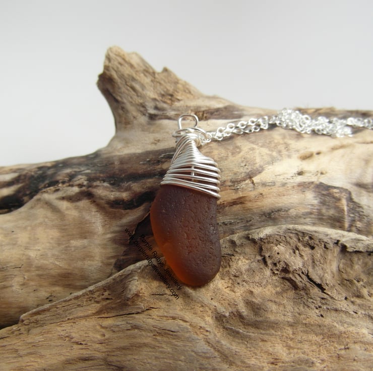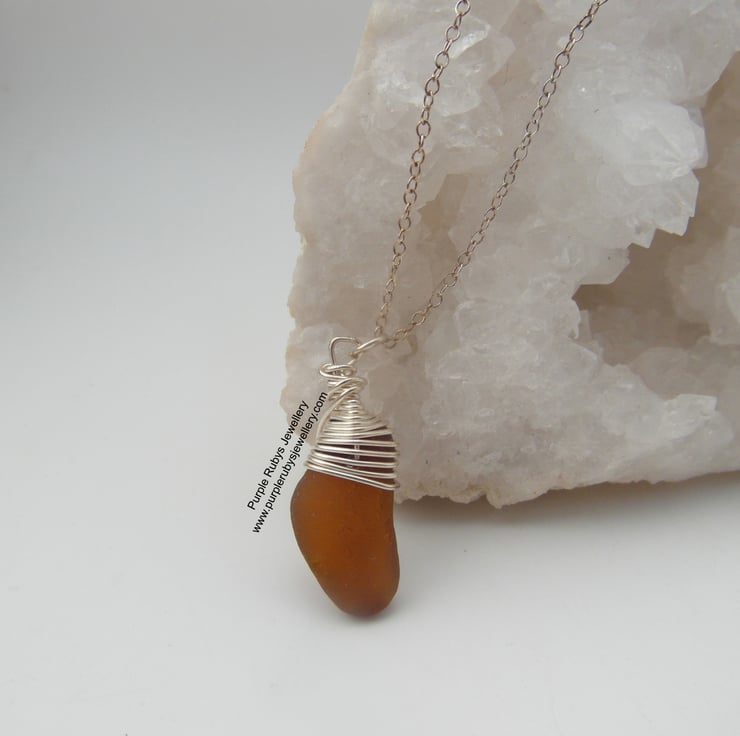 A beautiful, dainty piece of frosted amber Cornish sea glass wire wrapped with silver wire.