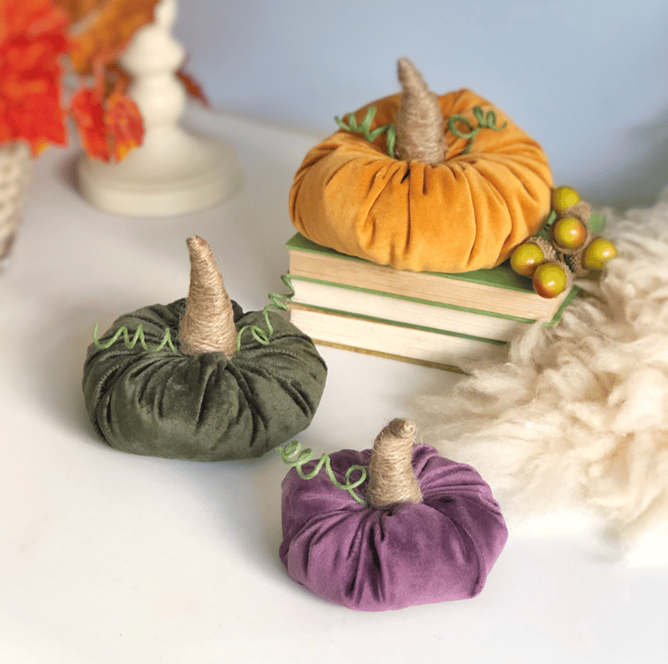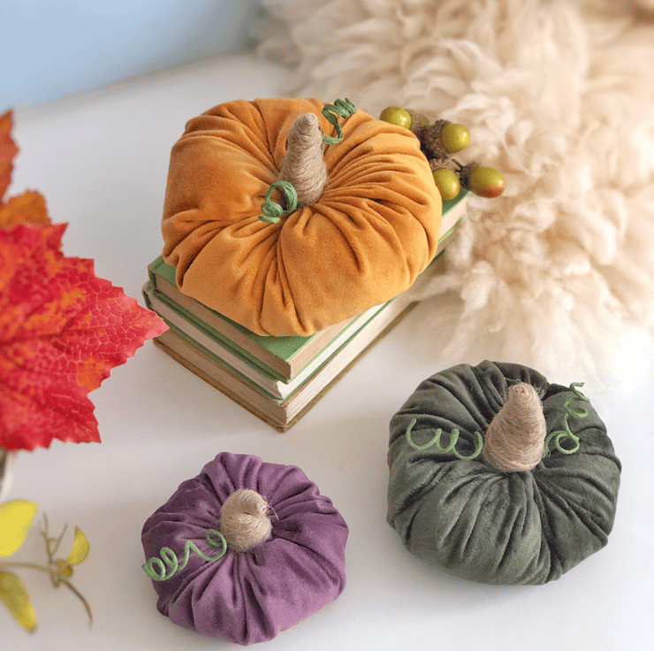 I made these set of 3 luxurious velvet pumpkins to adorn your home for autumn. These handmade pumpkins are in a set that includes 14cm, 10cm and 8cm diameter plush ornaments. These can be used as a display on your dinner table, sideboard, fireplace mantle and front porch. You can be as creative as you want with these!