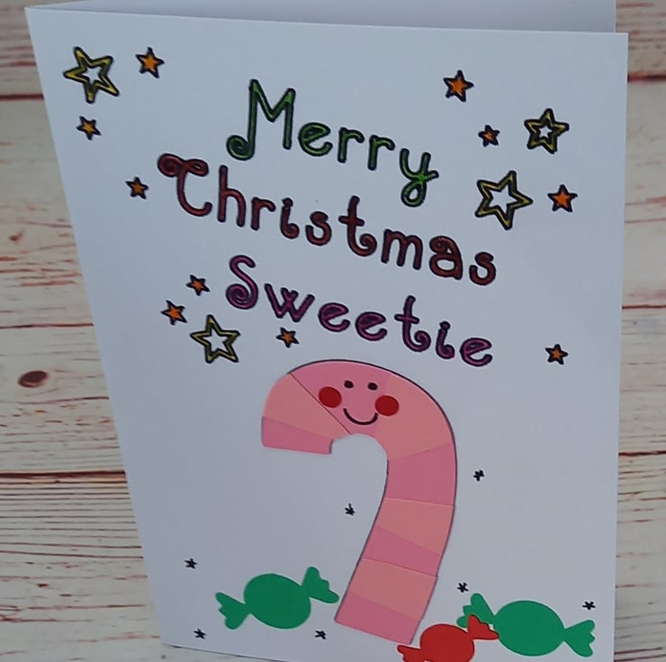 Featuring a smiling cartoon candy cane and the words 'Merry Christmas Sweetie' it'll carry the perfect seasonal greeting for anyone with a sweet tooth.