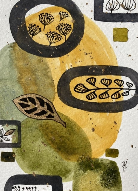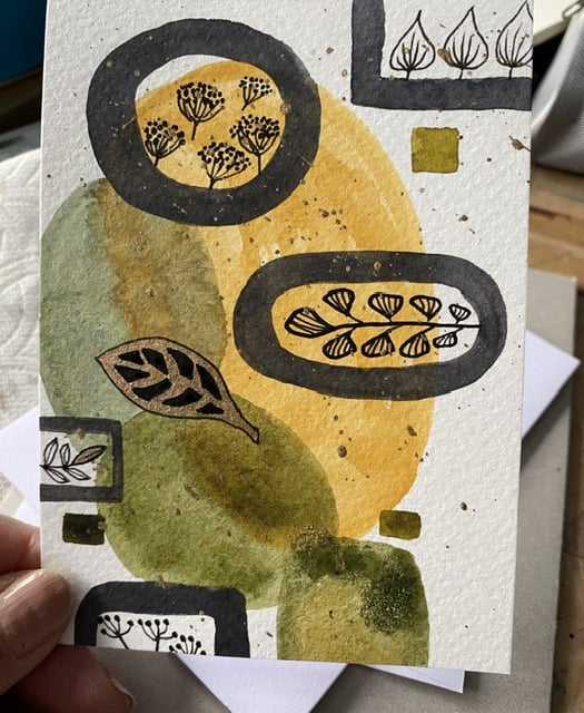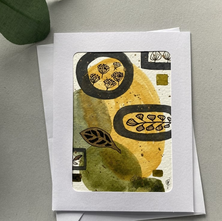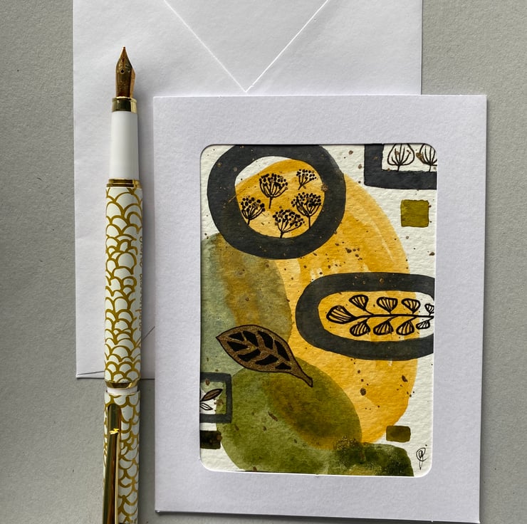 This is a hand painted original art card using watercolour and ink on watercolour paper, inserted into quality card stock. It measures approx 13.5 x 11 cms and is blank inside for your own message. It comes with a matching envelope sealed in a cello bag, postage free to UK destinations.