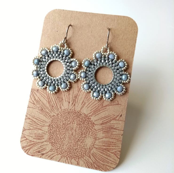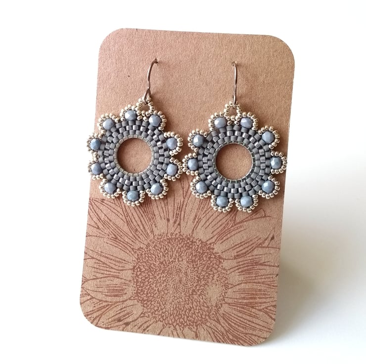 Beautiful glass seed bead earrings hand-woven with just a needle and thread to resemble a slightly retro style of flower-power - perfect for any occasion!