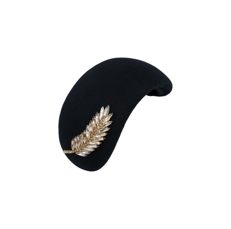 Handcrafted in pure wool felt, the fabric is shaped over a traditional millinery block before drying and hand-sewing a wire inside to ensure it keeps its shape and lasts for generations. The diamante trim is added before fully lining in a matching silk dupion fabric for a couture finish.