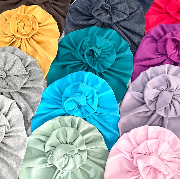 Please wash with mild detergent by hand washing or in a light load/delicates cycle on no more than 30 degrees. Lay turban hats flat to dry.