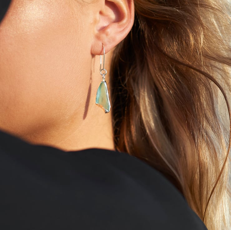 Creating these sea glass earrings inspires me by the beautiful sea glass found on the shores of North Devon. The natural beauty of sea glass and its connection to the ocean gives me so many inspirations working with different designs.
