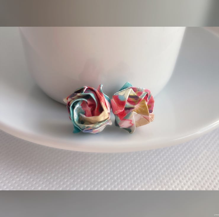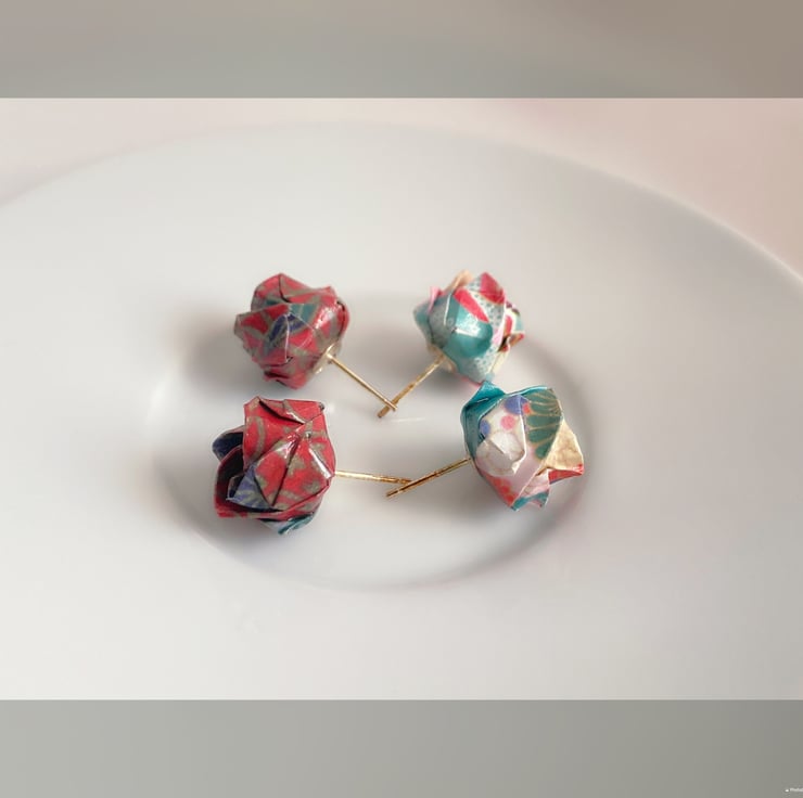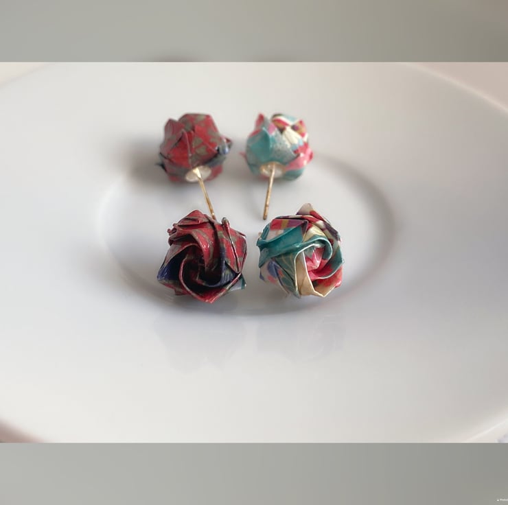 Handmade and carefully crafted origami rose flower earrings, each piece is unique.