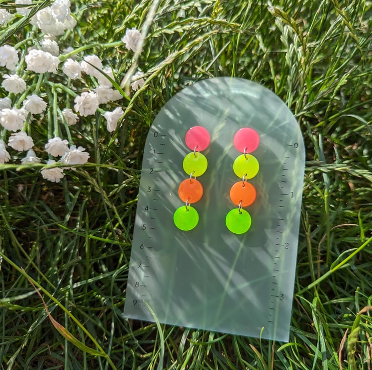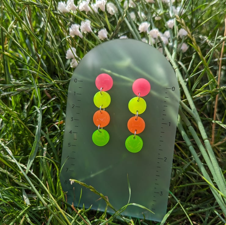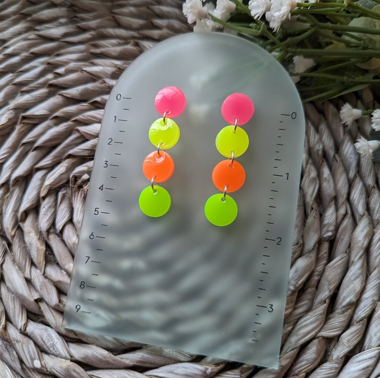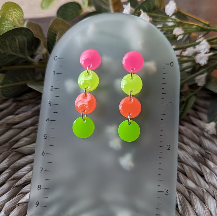 Pink, Yellow, Orange, Green neon circle drop earrings
