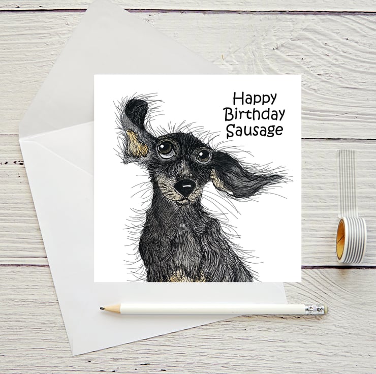 Featuring Scruff the Dachshund, send your birthday wishes with this wonderful dog card.