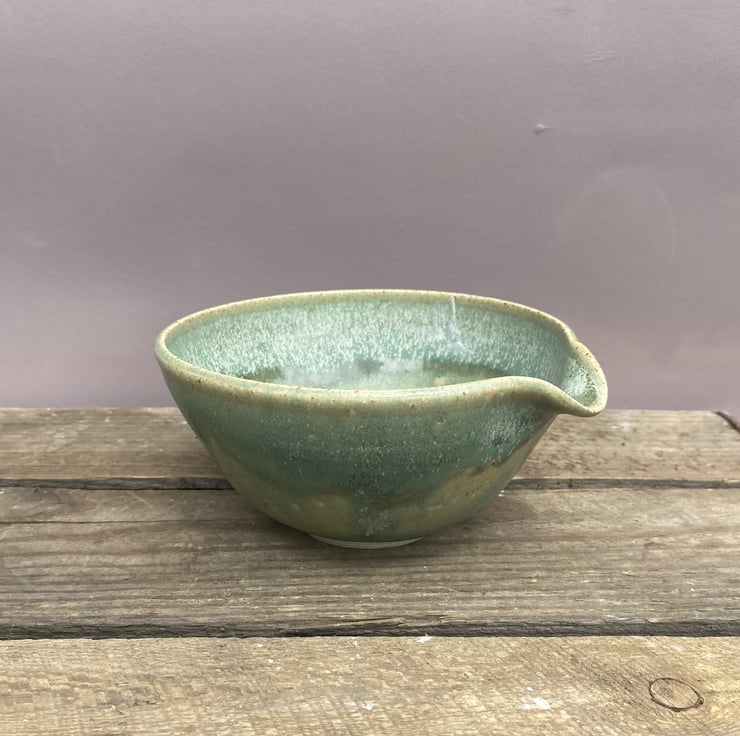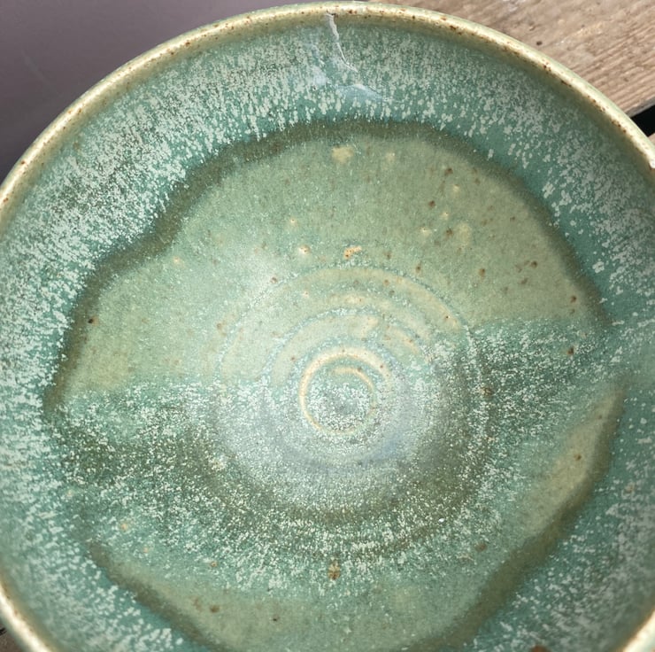 Wheel thrown in my small garden studio in Chester using St Thomas stoneware clay and glazed 'Solstice' from my own glaze range. Fired to 1250c.