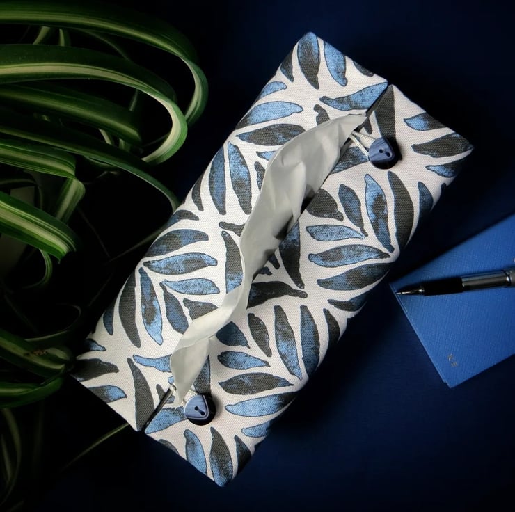 Printed cotton tissue box cover handmade in Glasgow, Scotland