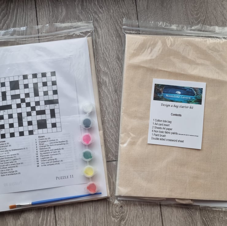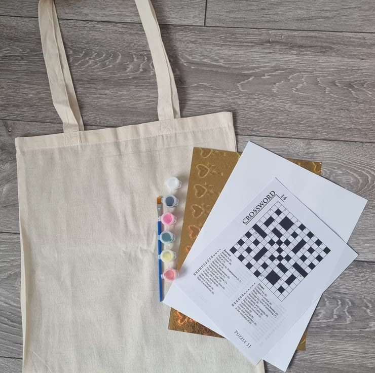 When you have finished your bag project, pop the kettle on and do the double sided crossword while the paint dries.