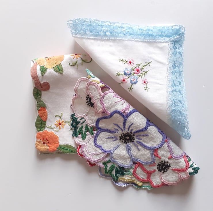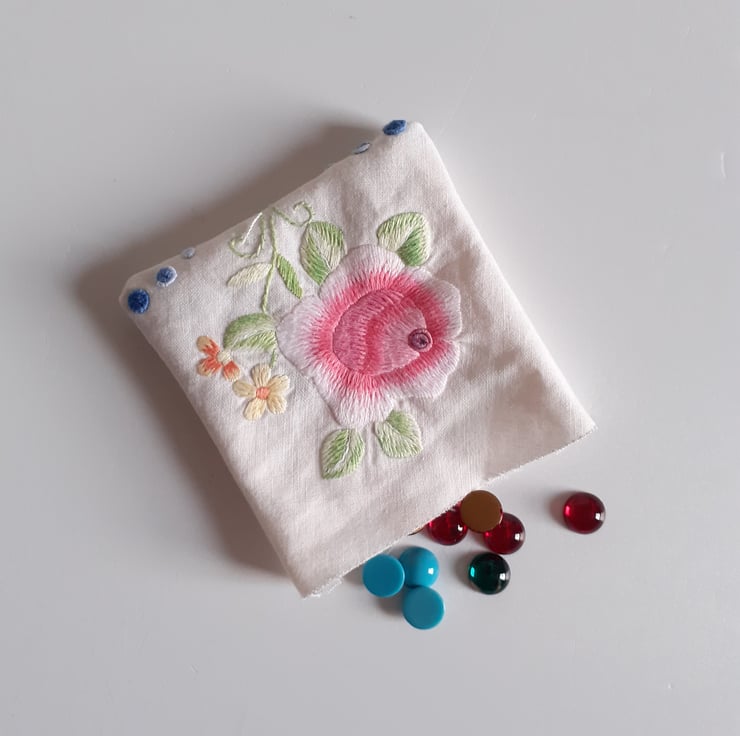 Hi there and welcome to my shop. Here you will find old embroideries, vintage fabrics and sparkling remnants made into something pretty and practical once again. I re-stock slowly but surely, so do keep coming back for a browse.