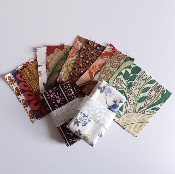 Slow stitching and sewing ideas from vintage haberdashery fit snuggly inside this little storage tin. I wanted to recreate the feeling of looking inside Granny's button box when you were a child. So, inside the tin are bits of ribbon, braid and lace. Also, cotton fat quarters, patchwork squares and a scattering of sequins and buttons. Perfect as a present for someone learning slow stitching or for trying out recycling ideas, and all stored in an unusual tin which looks like a book. These little embellishments will make your work that bit special, and add a sprinkling of history to whatever you decide to create.