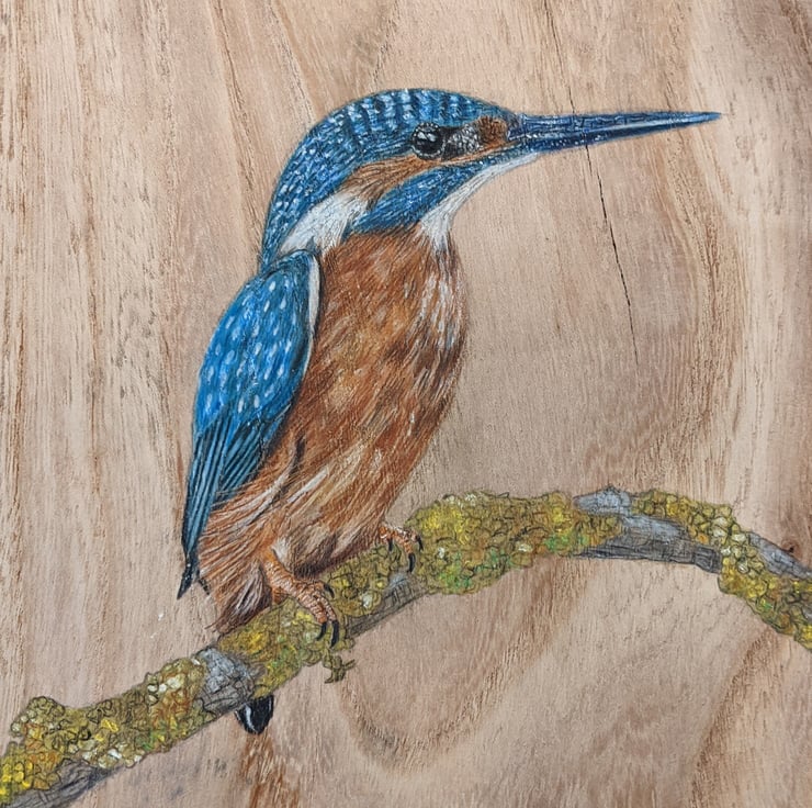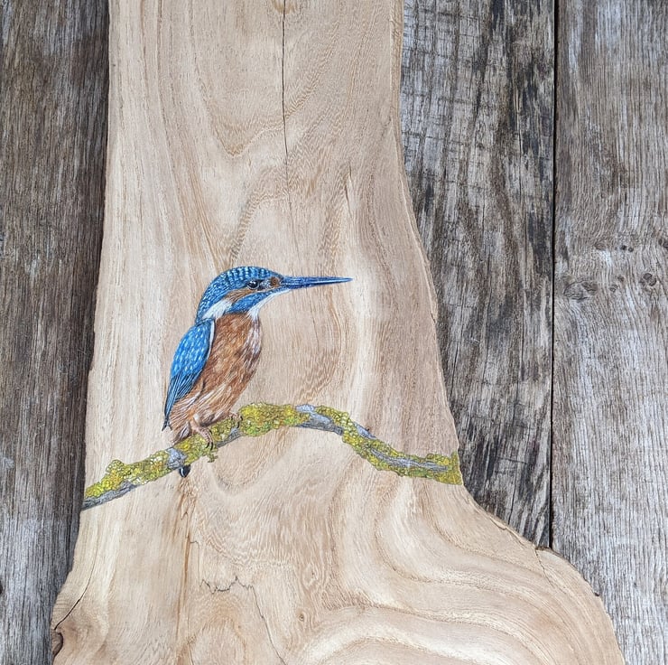 Created using watercolour paint, watercolour pencils and polychromo pencils on a gorgeous piece of reclaimed elm.