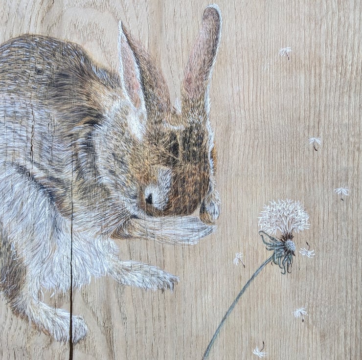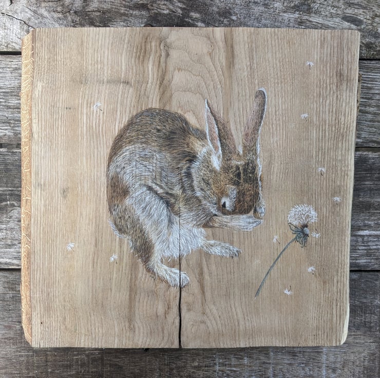 'A Little Wish' is an original painting of a beautiful little rabbit and a dandelion clock.