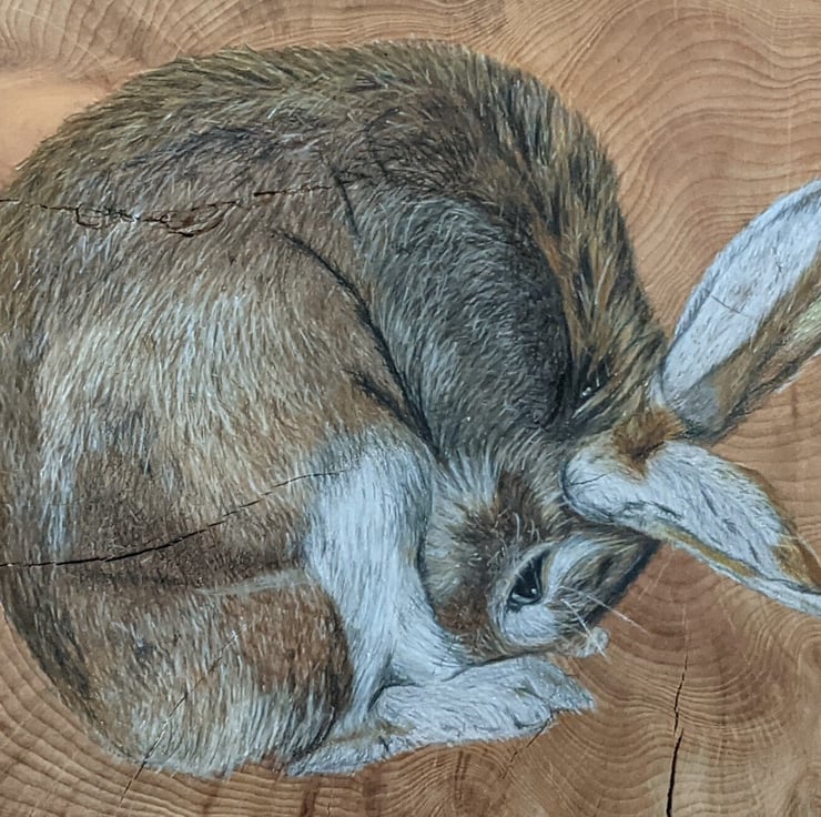 Original work created using watercolour paint, watercolour pencils and polychromo pencils on reclaimed wood.