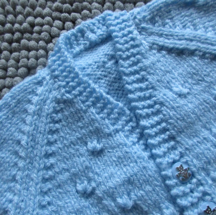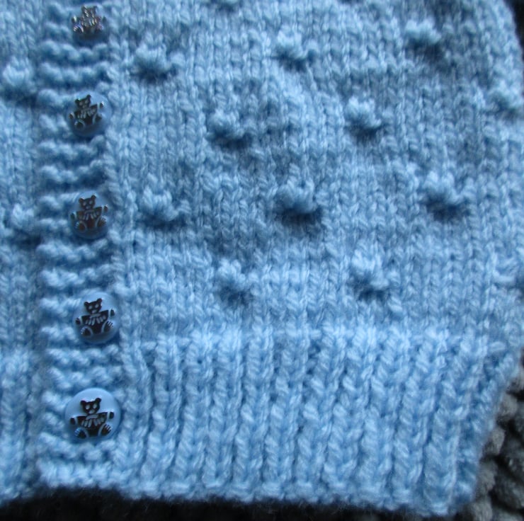 Fastening with 5 blue shank buttons with raised foil teddy (Boys Way)