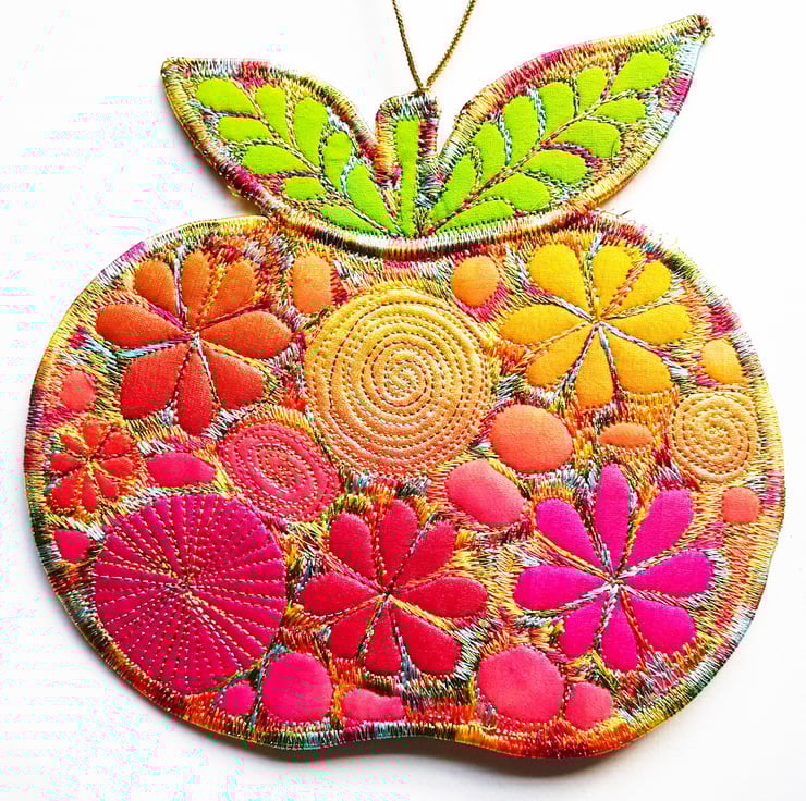 Made from hand dyed Egyptian cotton and silks and sewn using the free machine embroidery technique,.