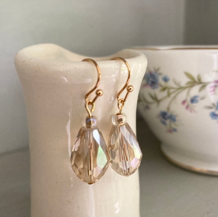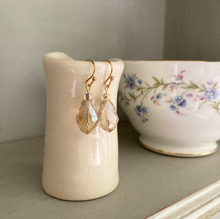 Pretty earrings made with pale gold sparkle beads and gold-plated earring hooks. The earrings are approximately 3.5cm in length including the hook.