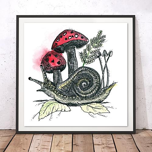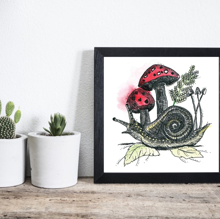 Dilly the snail starts life as a hand drawn illustration, using watercolour and pen.