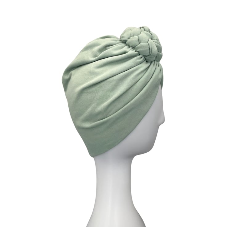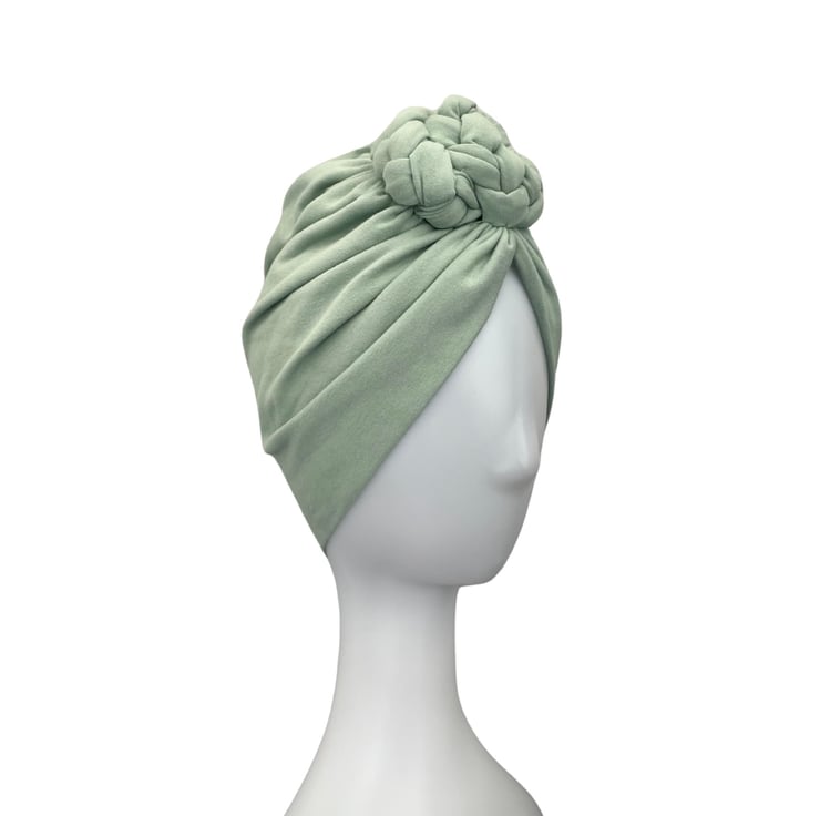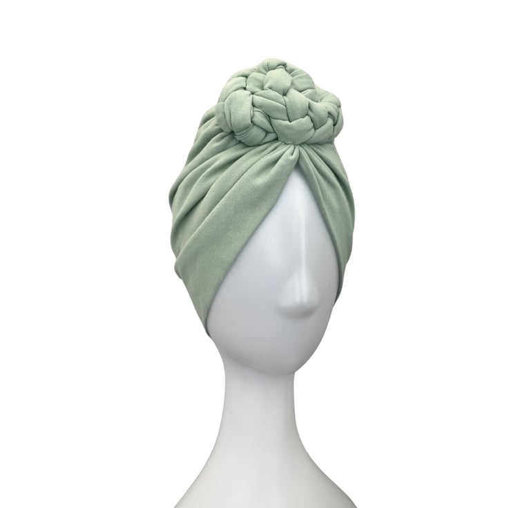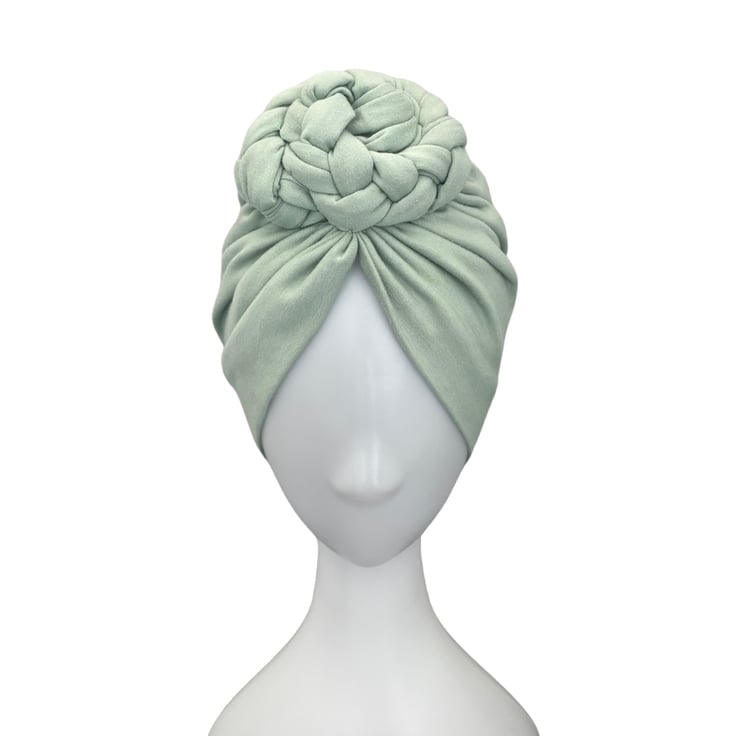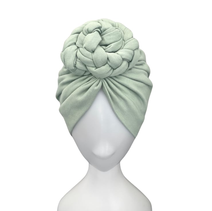 Pastel mint colour braided rosette turban hat for women.