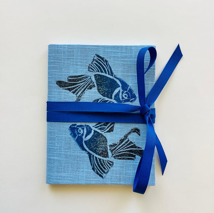 Lovingly designed Wellness Journal that features beautifully hand block printed Koi Fish inspired by nature, hand carved into lino block and then hand printed on natural Eco-friendly 100% linen.