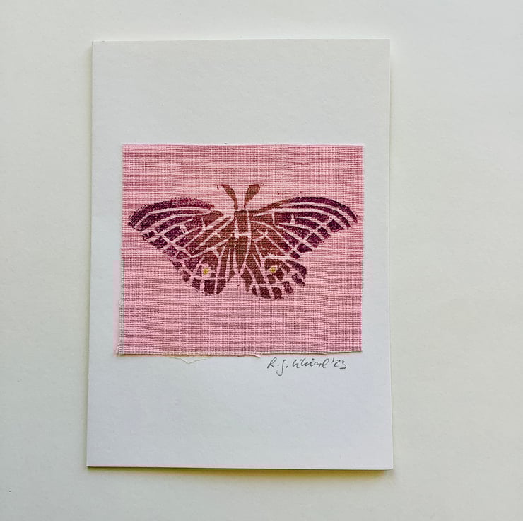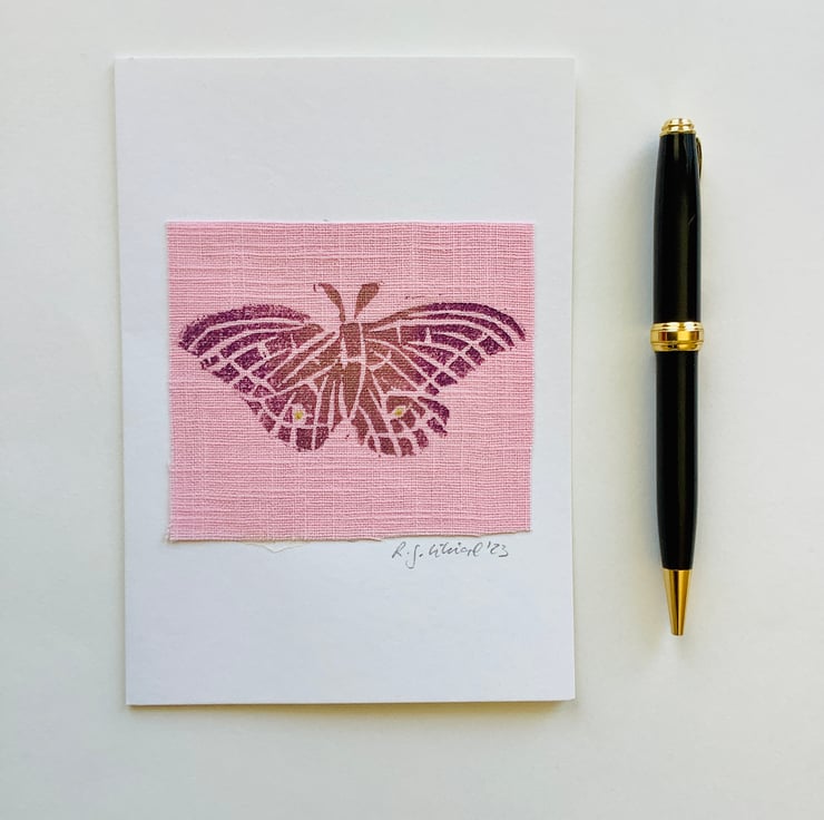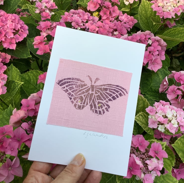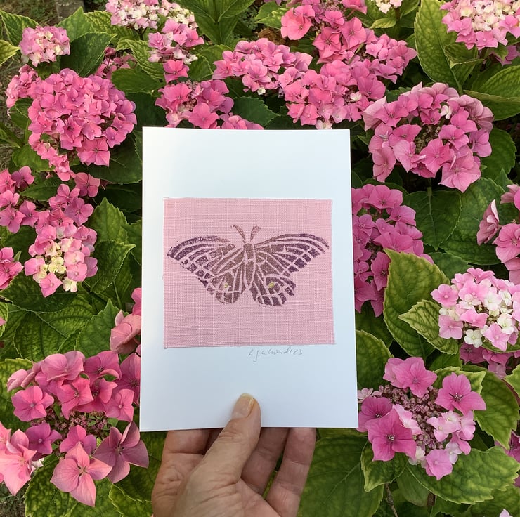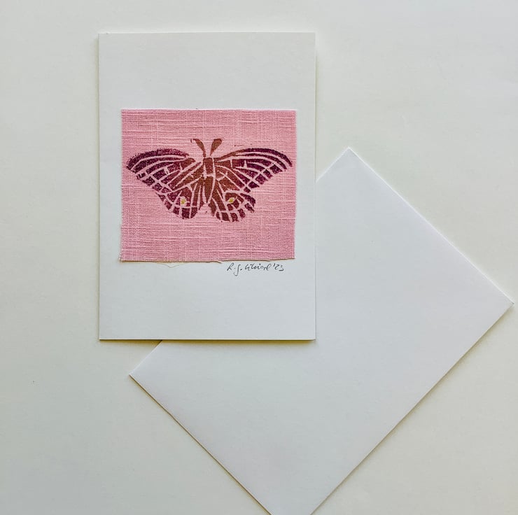 Lovingly designed greeting card that features beautifully hand block printed Butterfly inspired by nature, hand carved into lino block and then hand printed on natural Eco-friendly 100% linen. The print on linen fabric is then placed onto 100% recycled acid free paper. It is blank inside and perfect for writing that special message. It comes with a white recycled envelope.