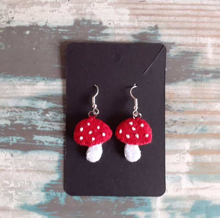 Mushroom Motif ,wool Felt Earrings with Hand Embroidery details. Stainless steel ear hooks