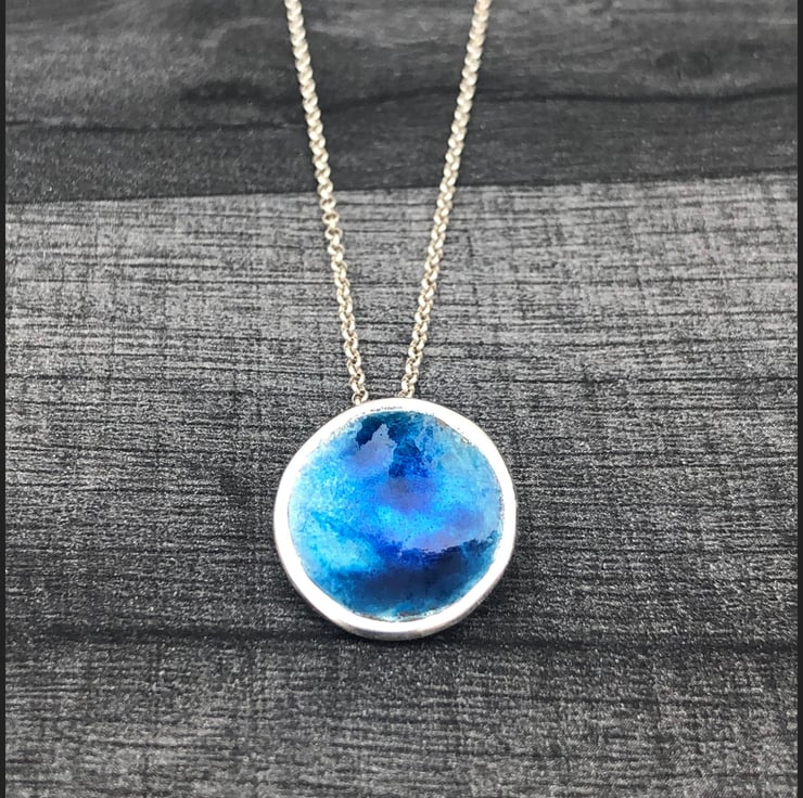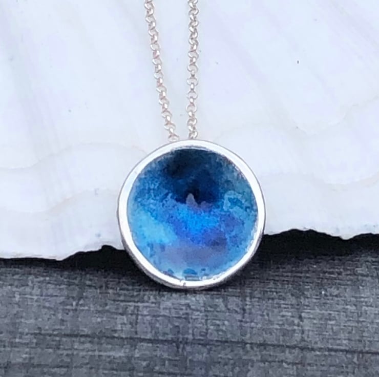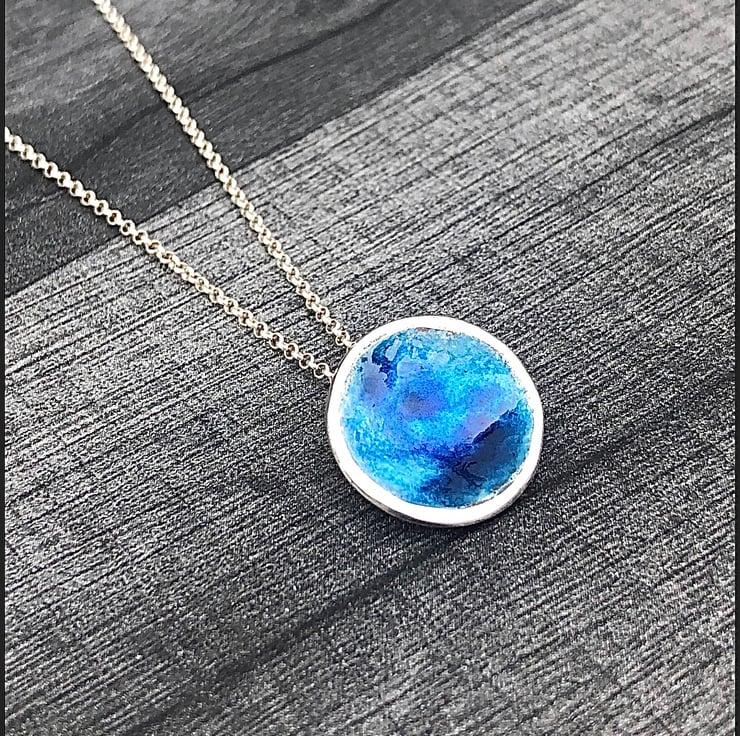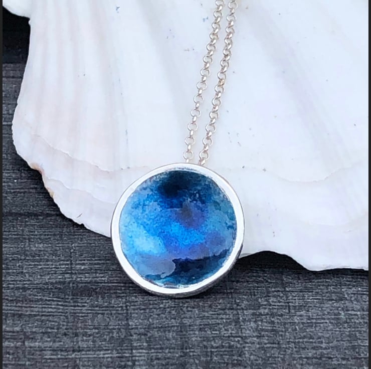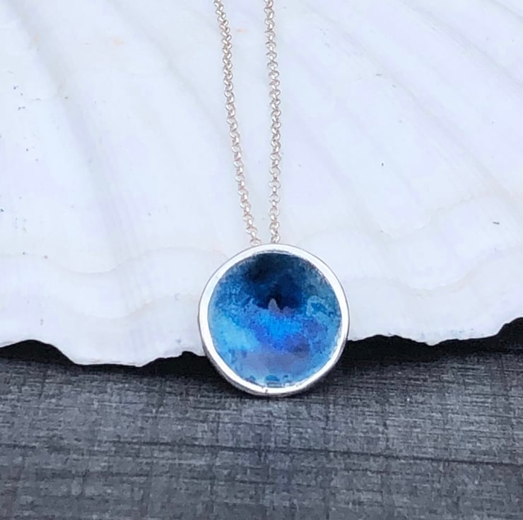 Enamel Pendant, blue enamel pendant, ocean pendant, sea pendant, enamel, round