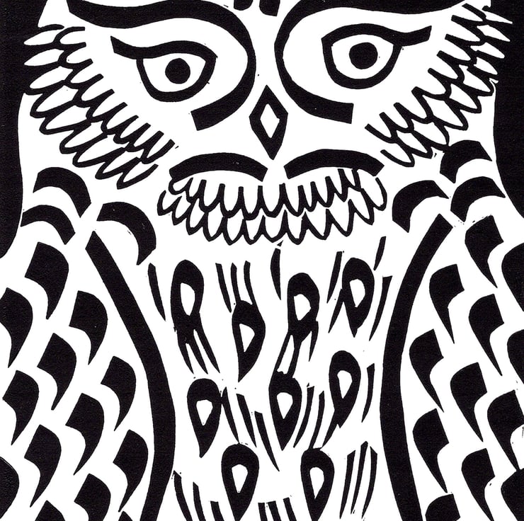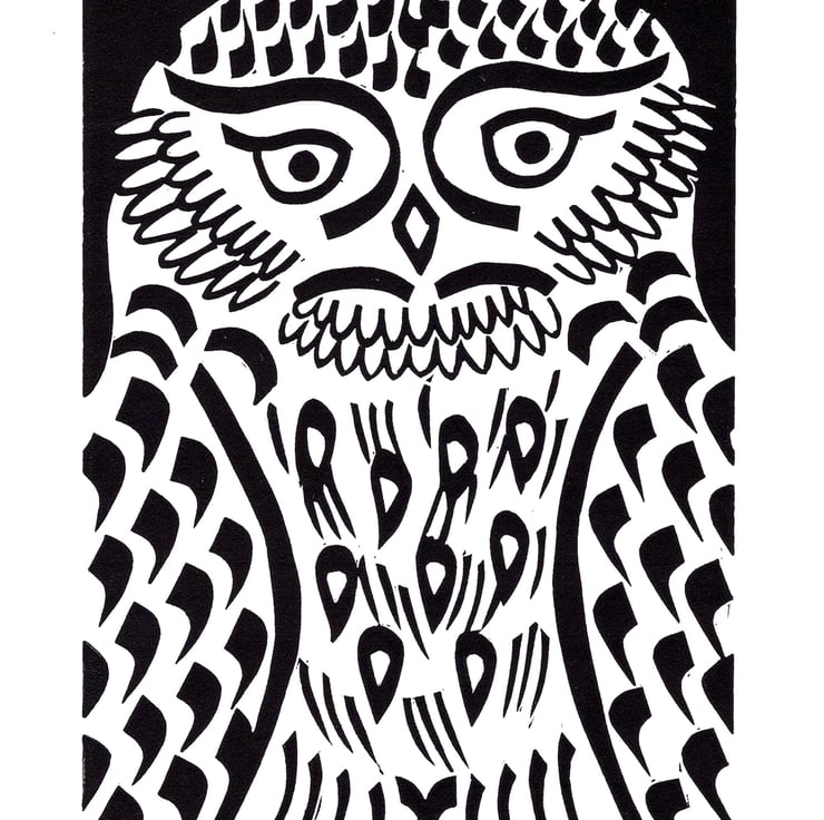 A figurative Little Owl linocut print from my series of 'Five English Owls'.