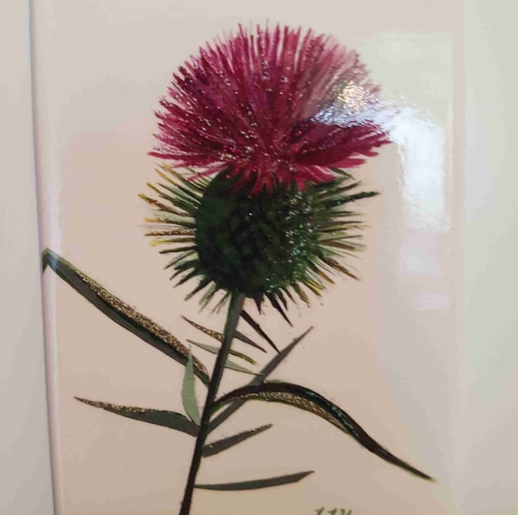 To create a mixed media design of a thistle and I really enjoyed making this design it was very much an inspired piece of art and I remember how happy and excited I was making it I think it comes through in the design. It lifts the spirits and celebrates the nature and country of Scotland.