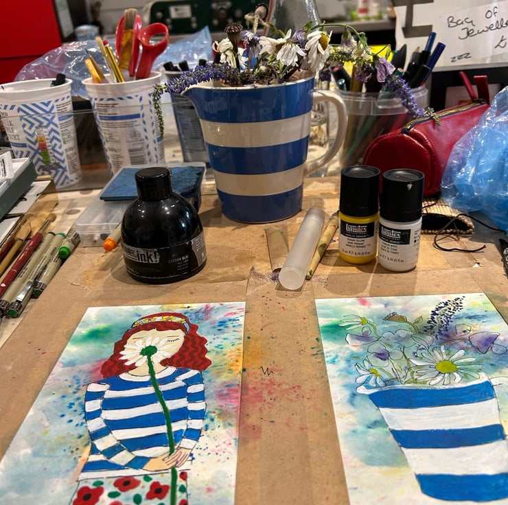 This is part of a series of little artwork influenced by a blue and white Cornishware jug. I love the summery blue.