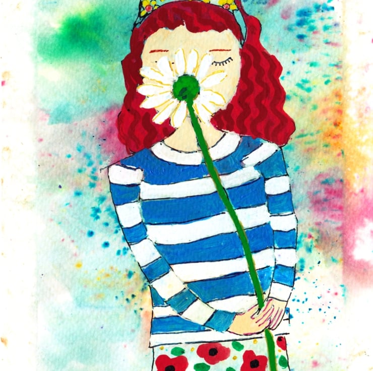Small original painting using acrylic gouache and ink. The background to this painting I used Brusho Inks.