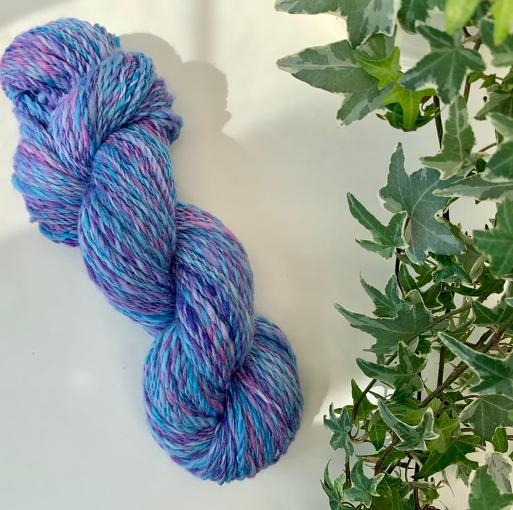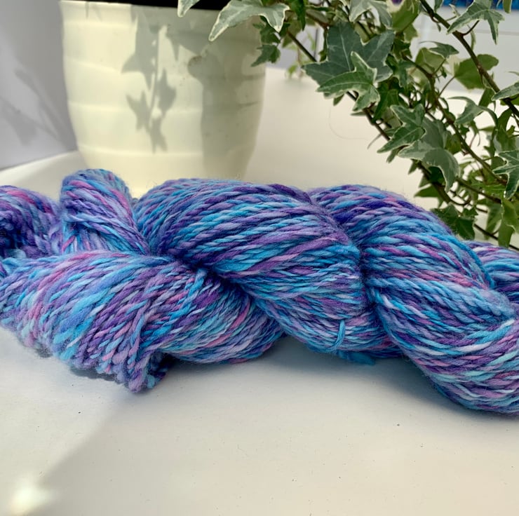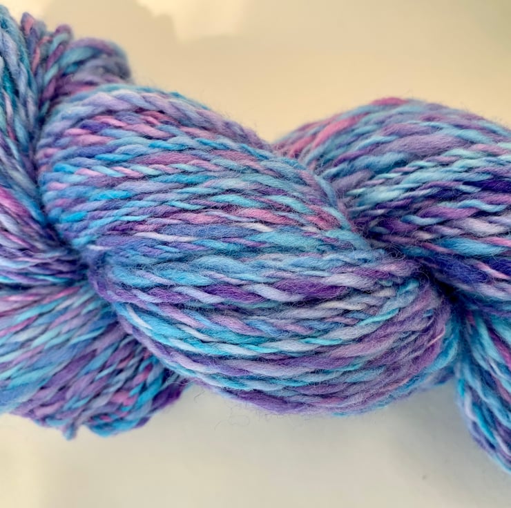 Hand dyed and spun Merino wool.