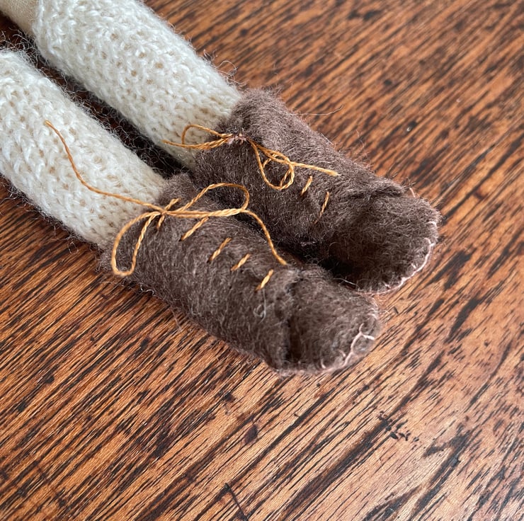 The finished doll measures approximately 18cm when complete and includes instructions for making the doll, dress, hat, cape, socks and boots. Basic sewing and knitting skills are required but I urge you to give it a go, even if you are a beginner.