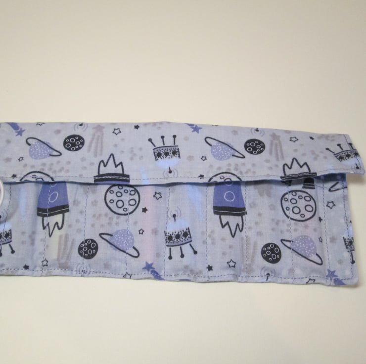 I always take pencils and small colouring book in my handbag when I am out with my grandchildren and these are the perfect way to keep the pencils all in one place, if you have 8 full slots you know you haven't lost any then just fold it over and roll it up ready for next time.