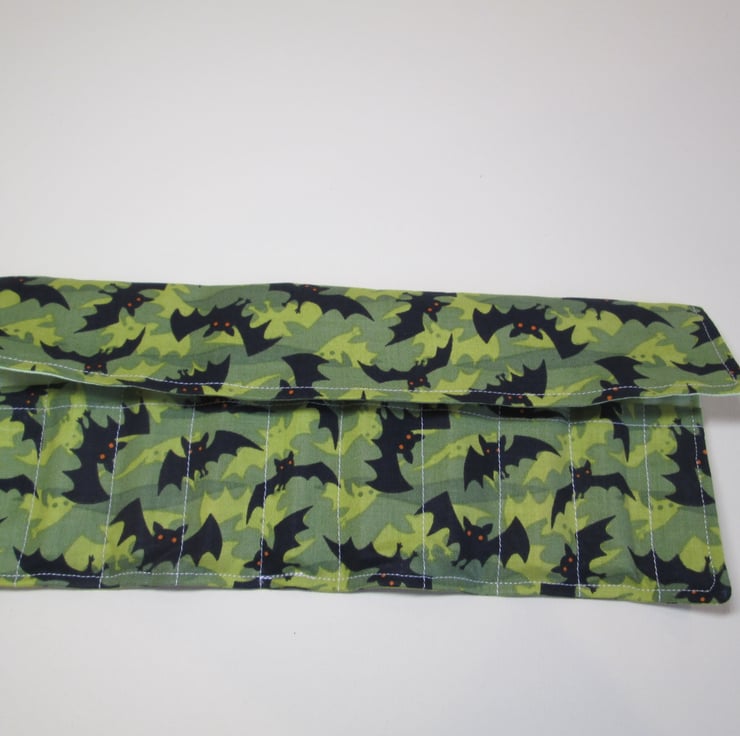 I always take pencils and small colouring book in my handbag when I am out with my grandchildren and these are the perfect way to keep the pencils all in one place, if you have 8 full slots you know you haven't lost any then just fold it over and roll it up ready for next time.