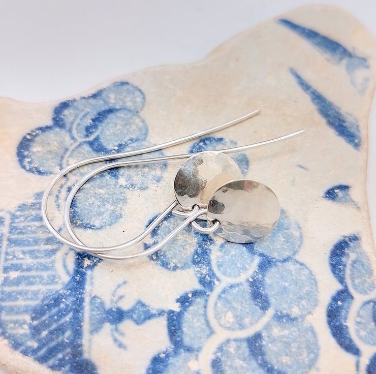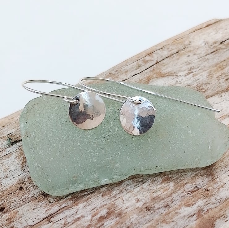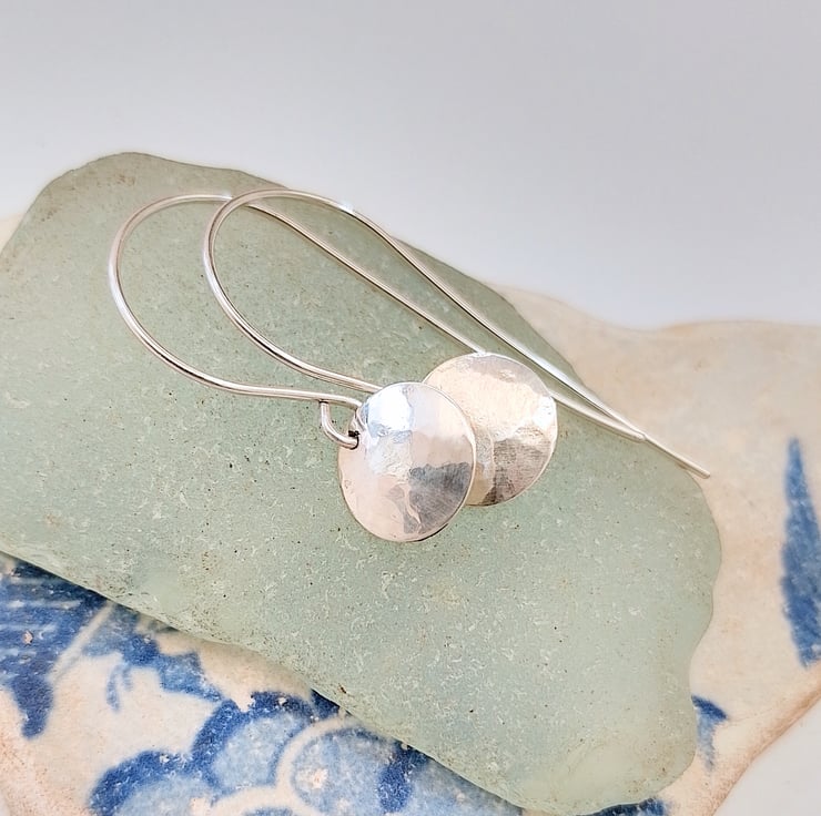 I have hand crafted these beautiful earrings from sterling silver which I have cut into disc shapes, carefully finished, hammered and then slightly domed to create an attractive design.