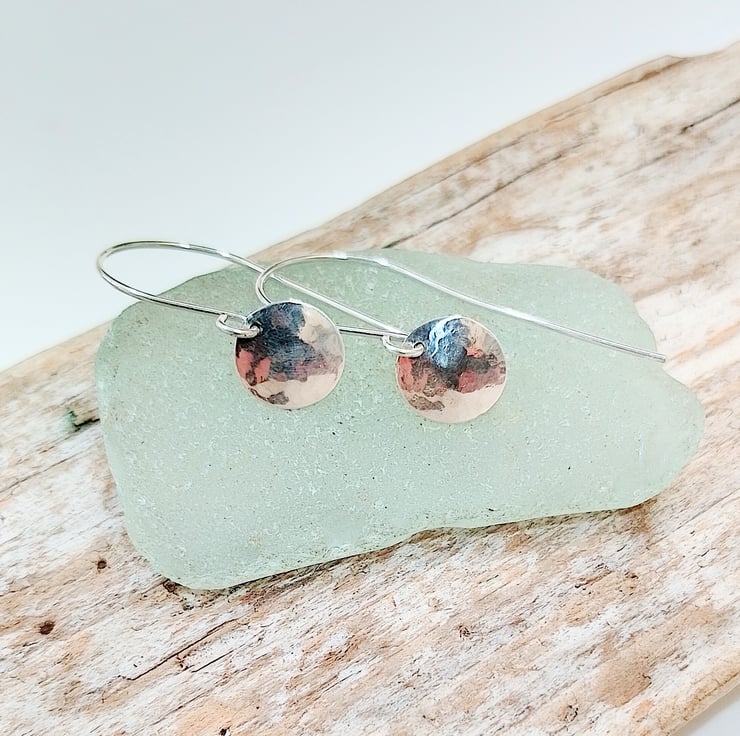 The discs have been polished and measure approximately 1 cm across. I have hung them from sterling silver earring wires which I have also handmade.